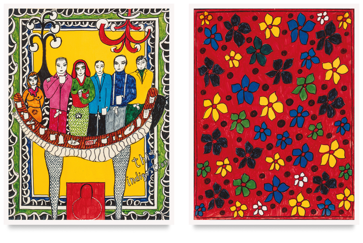 This series of 27 double-sided cards depicts the life of Dieter Roth, Dorothy Iannone’s beloved and muse, in the early period of their relationship. During 1968–69, Iannone worked on the cards while they were living in Düsseldorf where Dieter was professor at the Kunstakademie. The original drawings were censored during the exhibition Friends curated by Harald Szeemann at the Kunsthalle Bern in 1969.